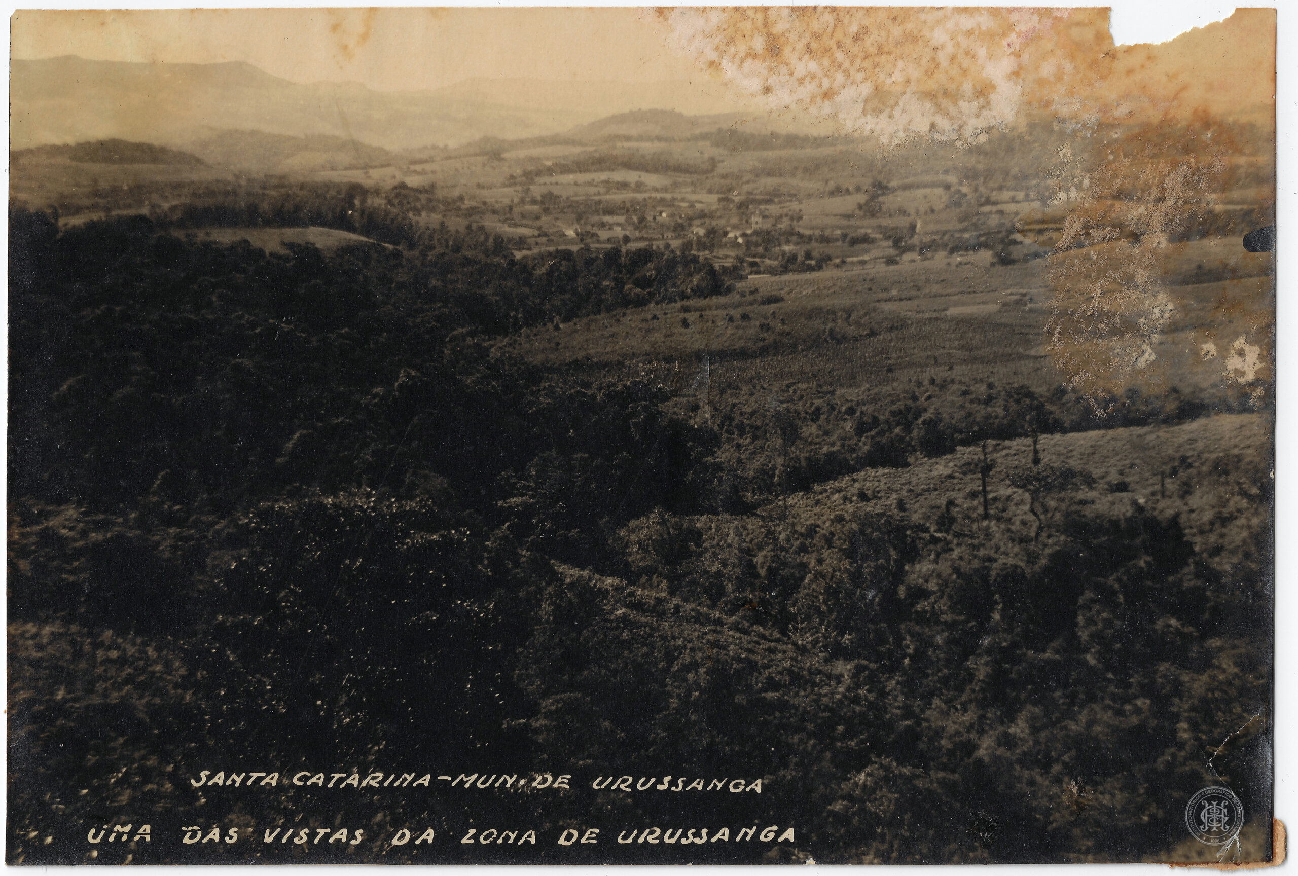No canto inferior esquerdo do anverso, consta a legenda impressa em letras brancas: "SANTA CATARINA-MUN. DE URUSSANGA / UMA DAS VISTAS DA ZONA DE URUSSANGA".