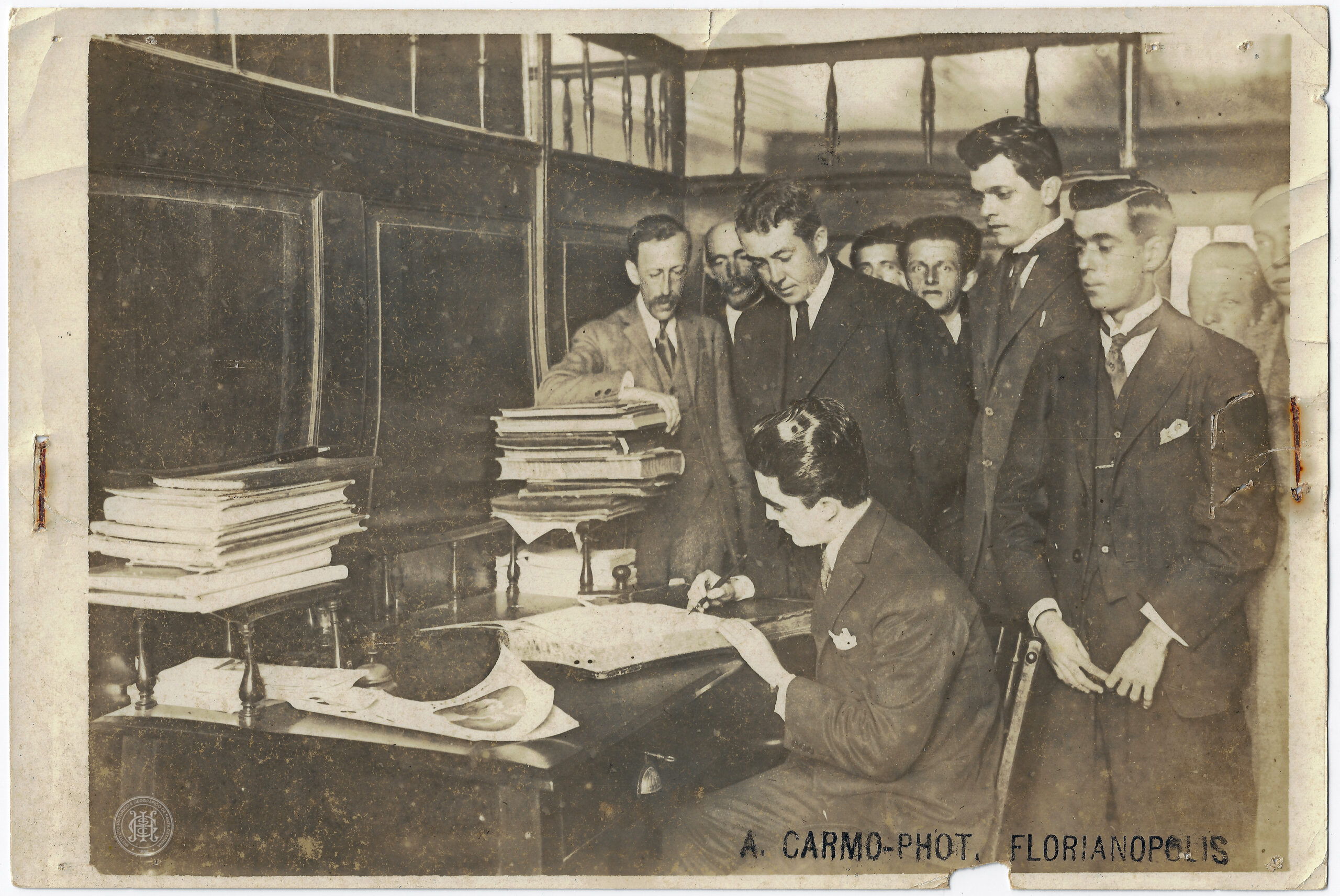 • Assinatura do contrato para a construção da Ponte Hercílio Luz