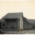 No plano médio, observa-se o núcleo da propriedade com edificações de madeira de grandes dimensões, possivelmente galpões ou armazéns, com telhados de duas águas. Entre as construções, identificam-se figuras humanas em pequena escala: um indivíduo à esquerda próximo a um monte de material acumulado e outro à direita, próximo a uma cerca de arame que delimita a área.