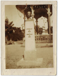 Busto comemorativo instalado em um espaço público de Joinville