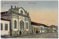 Arquitetura, Clubes sociais, Club 1º de Julho, Lages, Santa Catarina, Ecletismo, Edificações, Casarios coloniais, Sobrados, Logradouros e Lugares Urbanos, Rua, Vida cotidiana, Grupos Sociais e Anônimos, Relojoaria Paulo Baier, João Cabral, Cartão-postal, Cartão-postal urbano