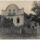 À direita do clube, observa-se um conjunto de casas térreas em estilo colonial, pintadas em cores variadas como amarelo, branco e verde, alinhadas ao longo de uma rua de terra. No cenário, figuram diversos sujeitos: um homem trajando trajes escuros e chapéu encostado à fachada do clube, um pequeno grupo de três pessoas à frente das residências e um cavalo encilhado parado na extremidade direita da via.