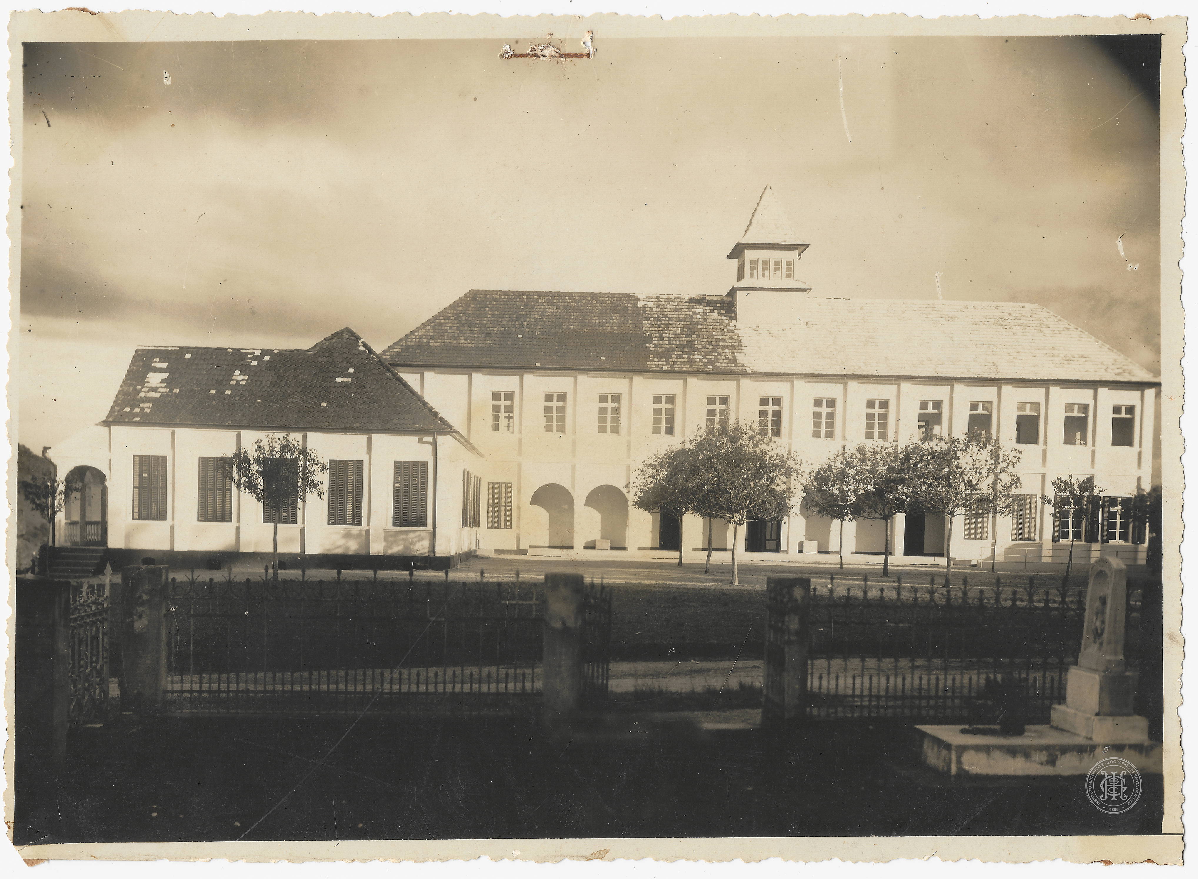 Gênero Fotográfico, Fotografia Documental, Brusque, Santa Catarina, Colégio Cônsul Carlos Renaux, Carlos Renaux, Instituições de Ensino, Escolas, Arquitetura e Obras, Edificações Públicas, Arquitetura de Influência Europeia, Fachadas, Arcos Plenos, Pátios, Jardins, Grades de Ferro, Monumentos, Paisagem Urbana, Patrimônio Cultural, Memória Social, Século XX, Educação em Santa Catarina.