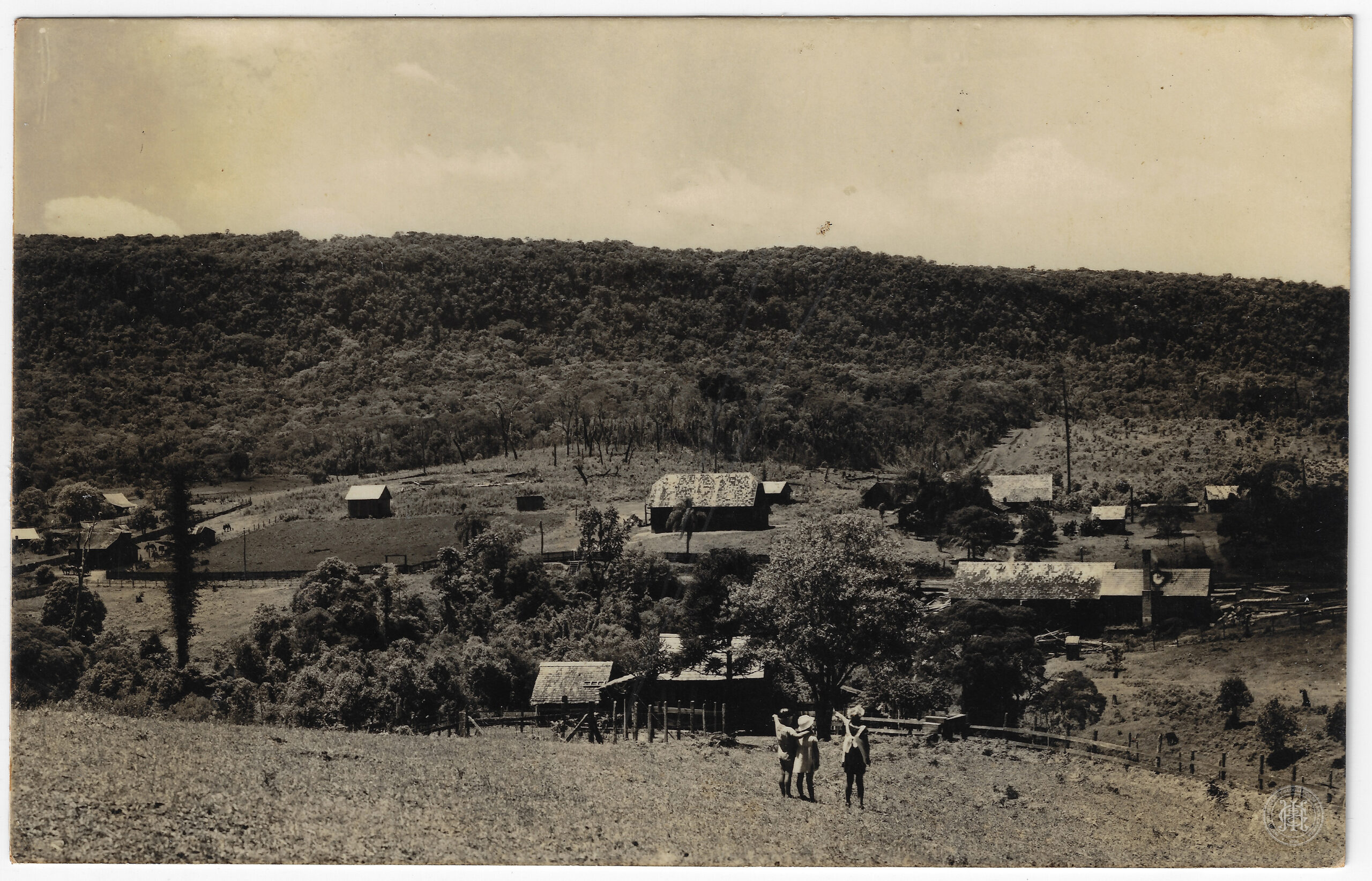 Fotografia registrando a configuração de uma colônia rural no distrito de Gustavo Richard, no município de Hamônia, atual Ibirama, Santa Catarina.