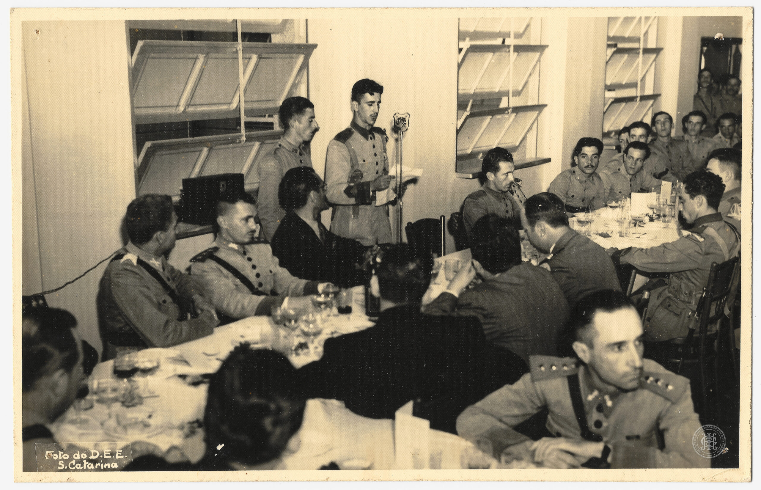Almoço oferecido pela Força Policial do Estado aos militares em homenagem ao contingente expedicionário. O evento ocorreu no Quartel General da Força Policial (atual Comando Geral da Polícia Militar de Santa Catarina), em Florianópolis, após as cerimônias cívicas realizadas no palanque de honra estabelecido na Praça Getúlio Vargas.
