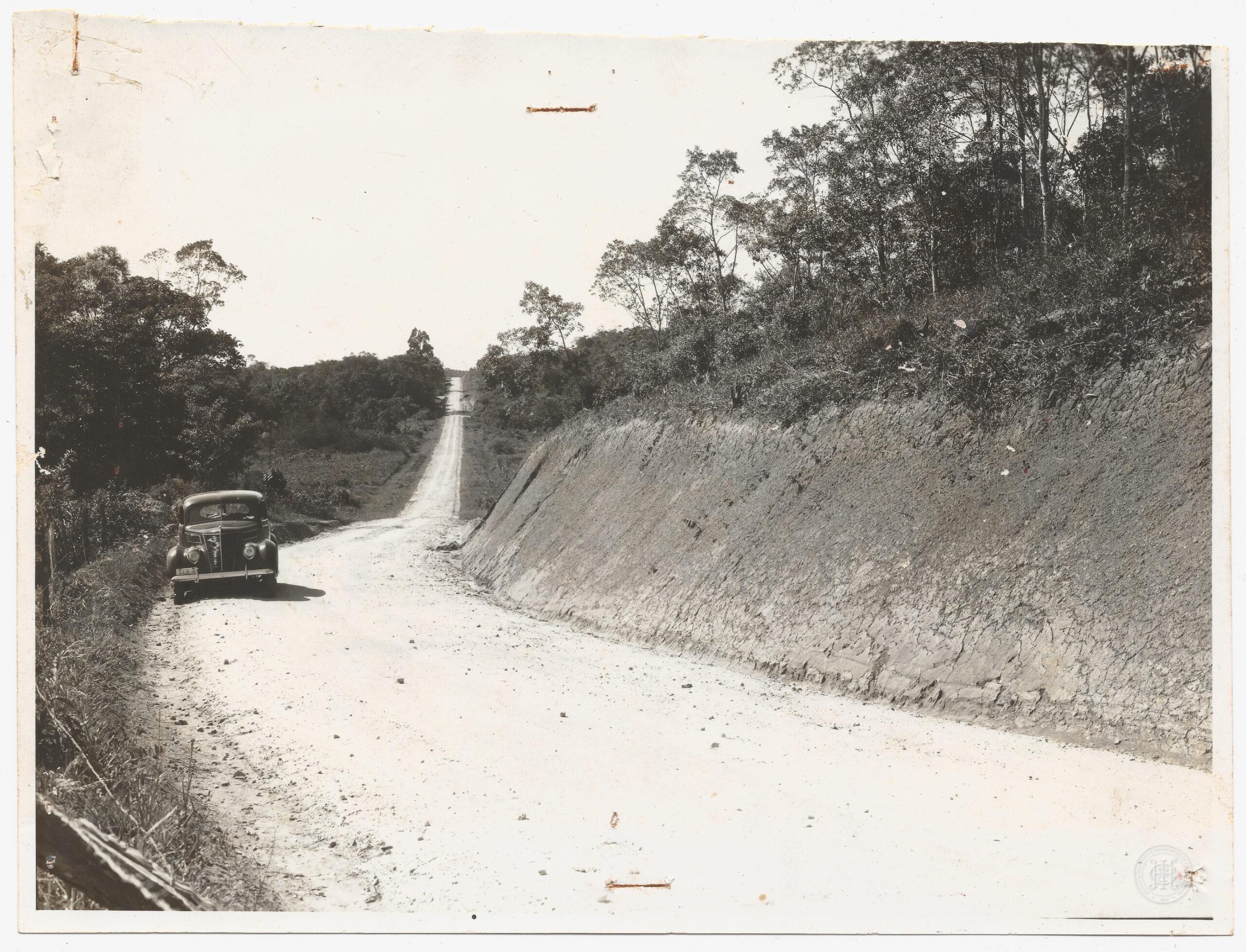 Paisagem, Estrada de rodagem, Rodovia, Infraestrutura e Engenharia, Caminho de terra, Perspectiva, Automóvel Antigo, Meios de Transporte, Elementos Naturais, Mata Atlântica, Floresta, Vegetação Nativa, Árvores, Relevo, Solo Exposto, São Francisco do Sul, Santa Catarina, Espaços Rurais