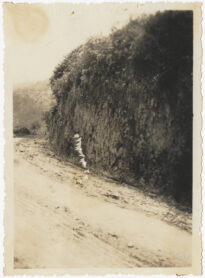 Trecho de estrada municipal em Brusque, no percurso em direção a Porto Franco. A imagem é composta por uma via de terra batida que ocupa o primeiro plano e se estende diagonalmente da base esquerda em direção ao plano médio. À direita, ergue-se um barranco íngreme e elevado, densamente coberto por vegetação arbustiva e rasteira que domina a metade direita da composição.