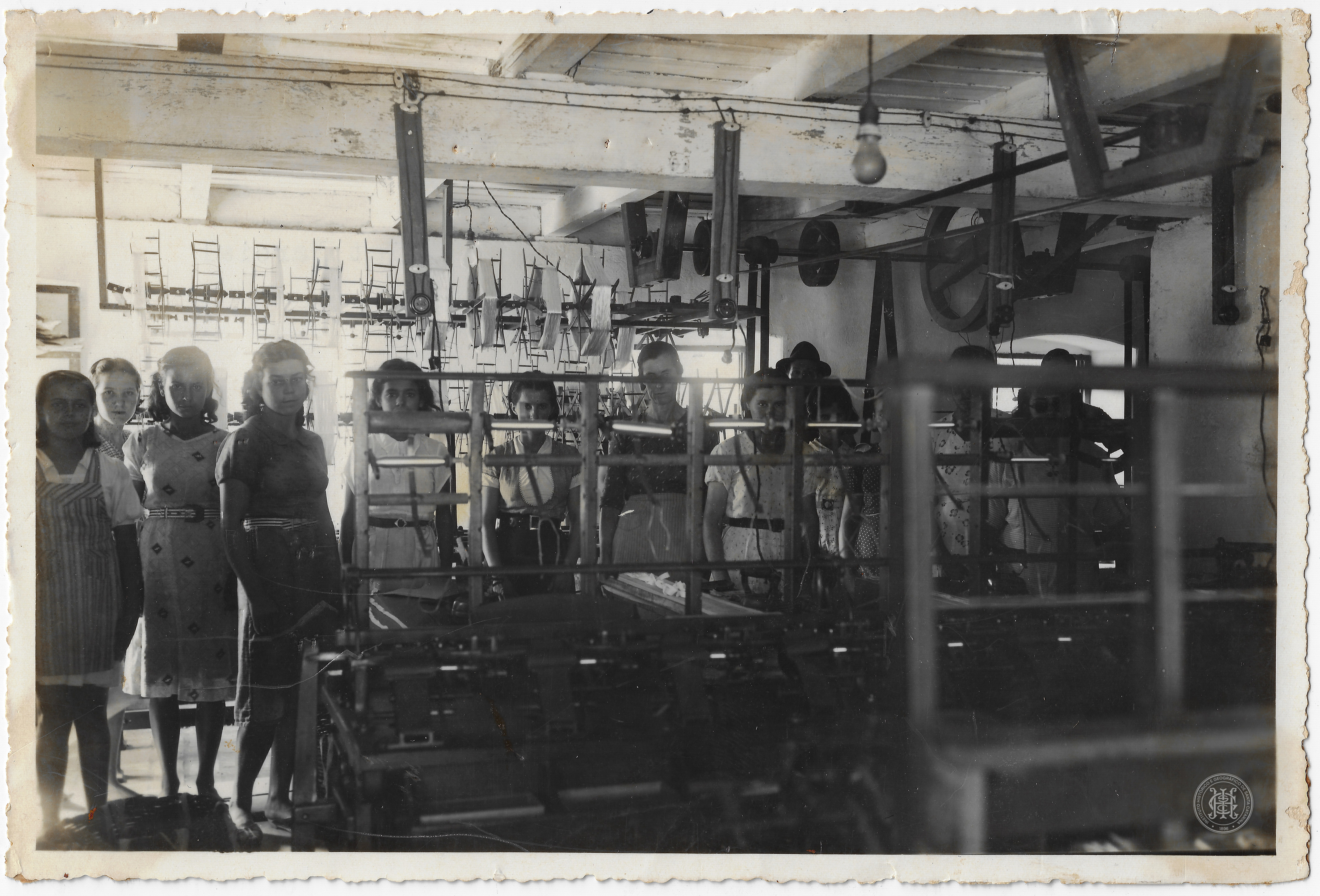 Brusque, Santa Catarina, Vale do Itajaí, Fábrica de Fitas de Seda, Otto Schaefer, Indústria Têxtil, Seda, Patrimônio Industrial, Maquinário, Tecelagem, Produção fabril, Trabalhadores, Mulheres no trabalho, Operárias, Grupo de pessoas, Indumentária, Trabalho e Atividades Econômicas, Instalações Industriais, Arquitetura Industrial, Galpão, Interior de Edifício