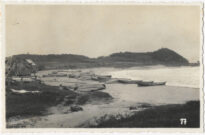Gênero Fotográfico, Fotografia Documental, Paisagem Costeira, Paisagem Urbana, Araquari, Santa Catarina, Rio, Mar, Embarcações, Canoas, Pesca Artesanal, Rancho de Pesca, Arquitetura e Obras, Edificações de Madeira, Patrimônio Privado e Residencial, Trabalho e Atividades Econômicas, Meios de Transporte, Vegetação, Morro, Relevo, Foto Brasil - Joinville, Século XX