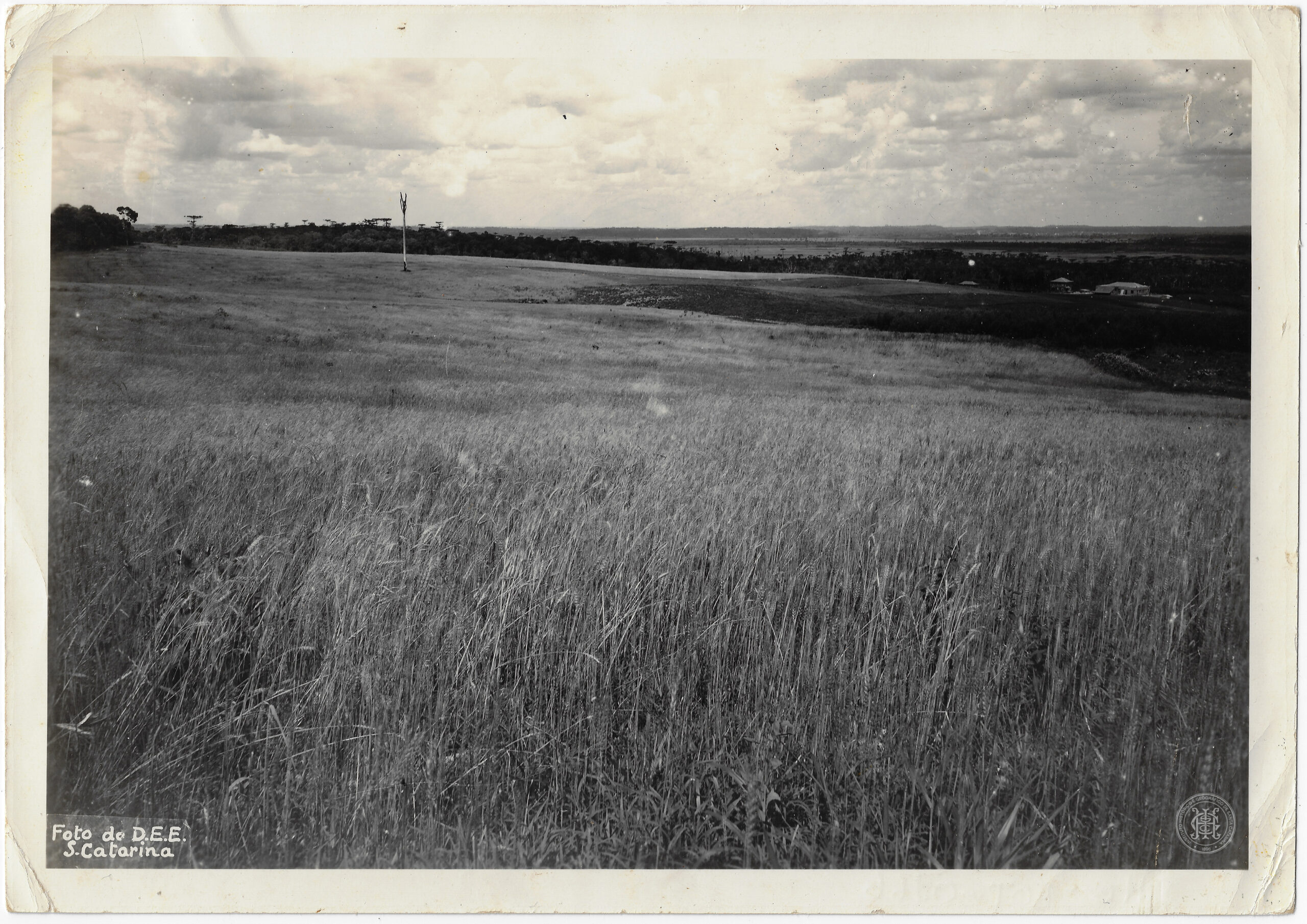 Vasta plantação de cereais, identificada como trigo, em uma área rural do município de Canoinhas, Santa Catarina.