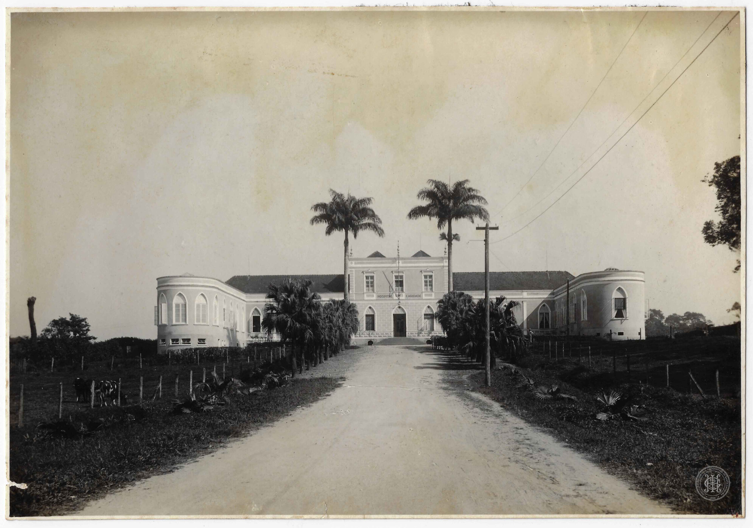 Datada de setembro de 1939, apresenta a fachada principal do Hospital Municipal de Caridade, em Joinville, Santa Catarina. A edificação, de arquitetura eclética e imponente, é composta por um corpo central de dois pavimentos e alas laterais simétricas.
