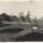Em primeiro plano, o solo é de terra batida e, à direita, uma figura feminina de estatura baixa traja um vestido claro, posicionada próxima a uma árvore e a uma cerca de madeira. À esquerda, uma pequena cerca de estacas delimita o terreno. O plano de fundo é composto por vegetação densa e um céu com formações de nuvens.