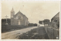 Gênero Fotográfico, Fotografia Documental, Cartão-postal, Paisagem Urbana, Araquari, Barra Velha, Paraty, Santa Catarina, Igreja Matriz Divino Espírito Santo, Arquitetura e Obras, Patrimônio Religioso, Igrejas, Estilo Neogótico, Torre Sineira, Cruceiro, Vias Públicas, Estradas de Terra, Cercas, Patrimônio Privado e Residencial, Arquitetura de Madeira, Vegetação, Urbanismo, Memória Social, Século XX, Foto Brasil Joinville, Documentação de Acervo.