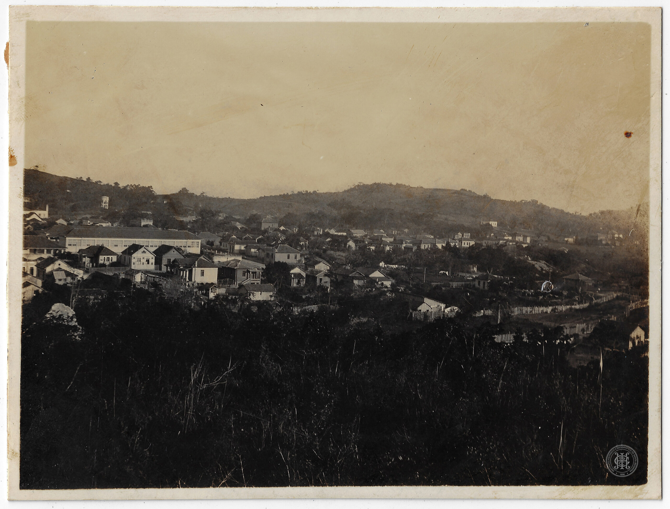 Paisagem Urbana, Vista Panorâmica, Distrito de João Pessoa, São José, Santa Catarina, Edificações, Casas Térreas, Telhados, Arquitetura Civil, Vegetação Urbana, Morros, Relevo, Elevações, Cerca de Madeira, Lotes Urbanos, Urbanização, Expansão Urbana, Estrutura Industrial, Torre de Água, Infraestrutura Urbana, Municípios de Santa Catarina