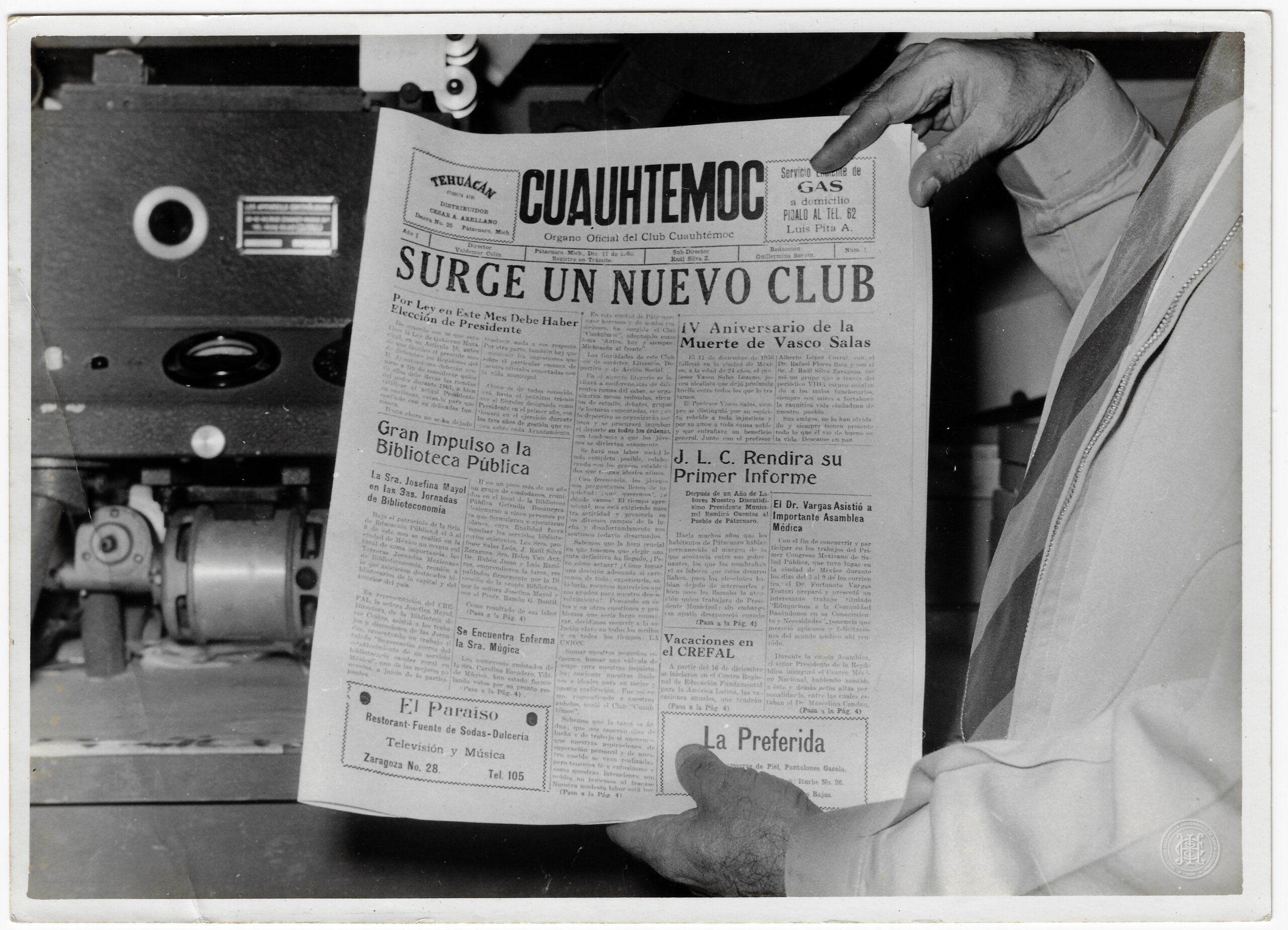 • Indivíduo segurando um exemplar do jornal “CUAUHTEMOC”