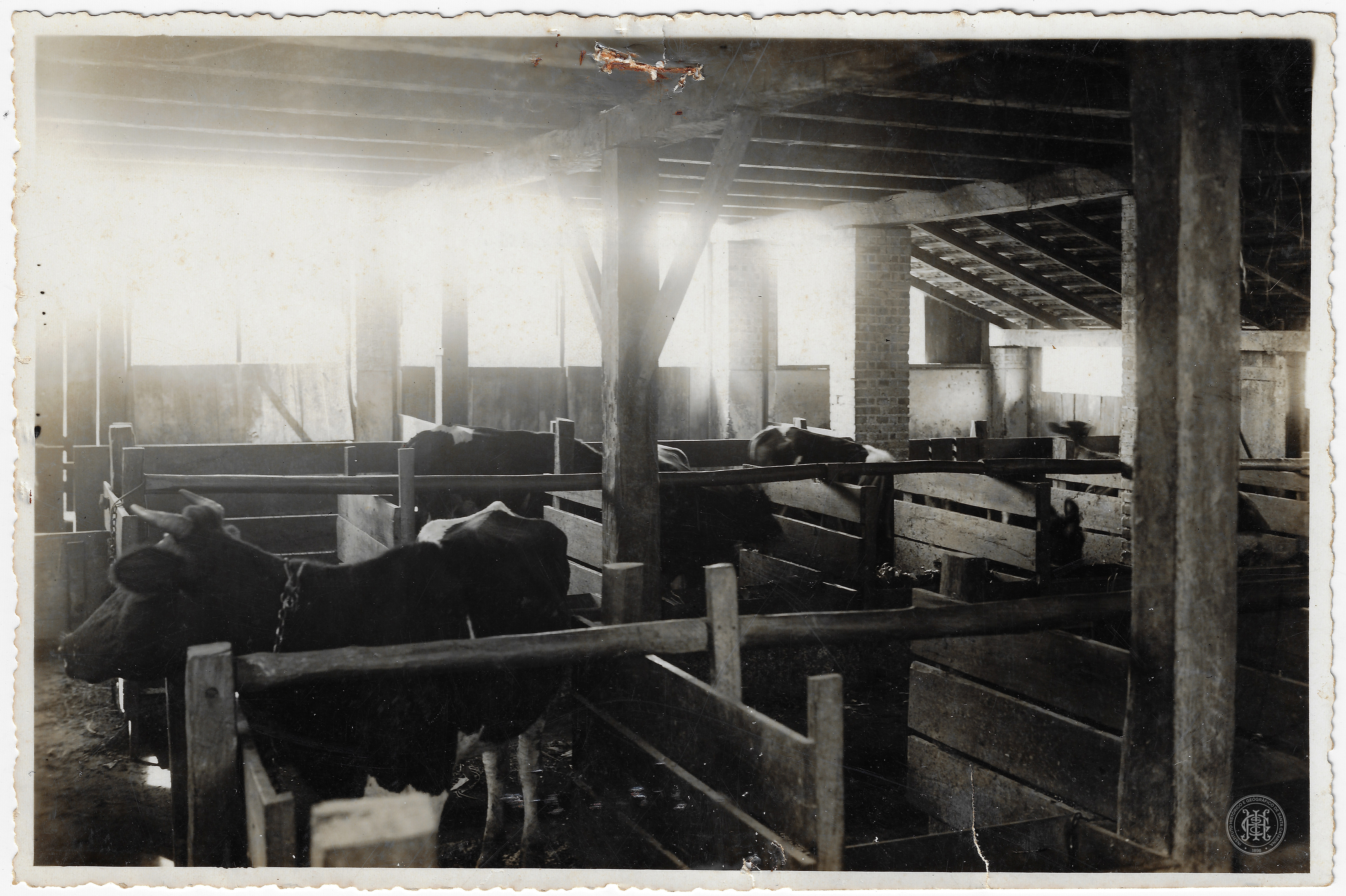• Interior de um estábulo com vacas holandesas