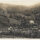 No plano médio, o terreno apresenta uma clareira gramada que se estende até a base de uma encosta, onde se nota uma pequena construção branca de dois pavimentos com telhado em duas águas e o que parece ser uma estrutura de captação ou canalização de água sobre pilares.
