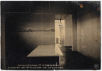 À esquerda, grandes janelas de madeira garantem a iluminação natural e ventilação do espaço. No canto inferior esquerdo do anverso, consta a inscrição impressa: "SANTA CATARINA - MUN. DE URUSSANGA / INTERIOR DO MATADOURO".