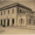 Em primeiro plano, observa-se uma via férrea de bitola estreita que curva para a direita, ladeada por um sujeito em pé próximo a uma pequena estrutura de madeira. No plano médio, à esquerda, destaca-se uma grande edificação industrial de madeira com múltiplos pavimentos e janelas quadrangulares, sustentada por uma complexa estrutura de vigas aparentes.