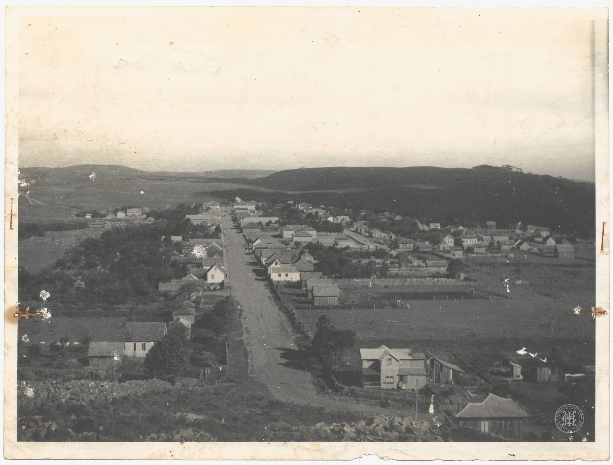 Paisagem Urbana, Vista Aérea, Núcleo Urbano, Malha Urbana, Via Pública, Estrada de Chão, Arquitetura Residencial, Casas de Madeira, Telhados, Quintais, Relevo de Planalto, Coxilhas, Vegetação Rasteira, São Joaquim, Santa Catarina, Serra Catarinense, Planalto Serrano