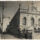 A arquitetura detalhada revela frisos decorados, capitéis trabalhados e molduras em relevo que conferem profundidade à fachada. As figuras humanas, embora em escala reduzida em relação ao edifício, vestem indumentárias típicas da década de 1920, com os militares utilizando túnicas, culotes e coberturas de abas, enquanto os civis vestem roupas claras. Na extremidade inferior direita da imagem, observa-se um carimbo circular seco. O suporte apresenta tonalidade amarelada devido à oxidação natural, com pequenos pontos de sujidade e marcas de manuseio.