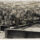 À esquerda, destaca-se um banco de madeira ripada posicionado diagonalmente. No plano médio, o espaço aberto e ensolarado apresenta diversos bancos de madeira pintados de branco e mesas circulares distribuídas de forma organizada. Sobre uma das mesas, observa-se uma garrafa isolada. Troncos de árvores finos e uma parreira com folhagens que se estendem sob uma pérgula integram a cena.
