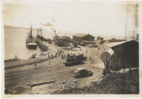 Fotografia apresentando a dinâmica operacional do Porto de Imbituba, Santa Catarina, em 1938.