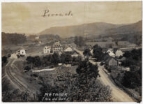Vista panorâmica do povoado de Matador, em Rio do Sul, Santa Catarina. A composição organiza-se com um terreno de vegetação rasteira e arbustos em primeiro plano, que se estende até o plano médio, onde se observa o núcleo habitacional disperso.
