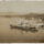 No plano médio, a ocupação urbana estende-se até a orla, onde se visualiza o antigo Mercado Municipal posicionado de frente para o mar. O plano de fundo é composto pela Baía Sul, apresentando quatro embarcações de pequeno e médio porte ancoradas. O horizonte é delimitado pelo perfil das montanhas da porção continental. A composição possui enquadramento amplo, capturando a integração entre o núcleo urbano administrativo, o espaço público de lazer e a atividade portuária. Inscrições impressas na margem esquerda e inferior identificam a série e o local, integrando a peça à coleção "Serie Florianopolis, No. 6. — Verlag der Buchhandlung Eugen Currlin in Blumenau."