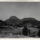 À direita, um curso d'água ou pequena lagoa reflete a luminosidade do ambiente. O plano de fundo é composto por uma linha de horizonte baixa, onde a silhueta da vegetação encontra um céu encoberto e difuso. O enquadramento é amplo, enfatizando a integração entre a atividade humana em pequena escala e os ecossistemas nativos da região serrana.