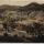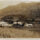 Ao fundo, o terreno eleva-se em uma encosta de morro composta por áreas de pastagem, alguns troncos de árvores remanescentes e vegetação arbórea densa que ocupa o horizonte superior da composição. A cena é caracterizada por uma perspectiva que integra elementos de infraestrutura de transporte ao ambiente natural e rural.