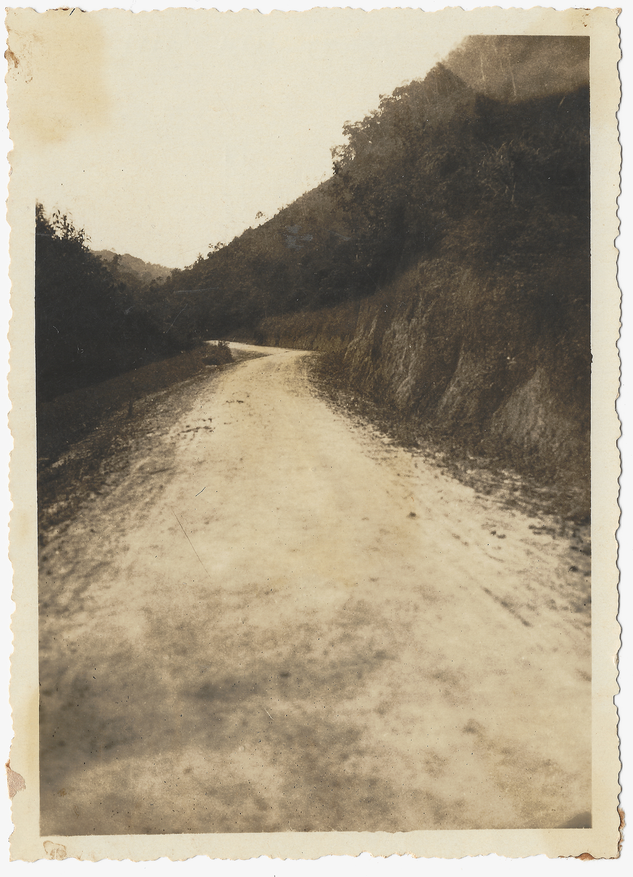 Fotografia Documental, Paisagem Rural, Estradas e Rodovias, Infraestrutura e Engenharia, Rodovias e Estradas, Estradas Municipais, Brusque, Ribeirão do Ouro, Santa Catarina, Mata Atlântica, Vegetação, Talude, Solo de Terra, Relevo Montanhoso, Meio Ambiente, Transporte Terrestre, Comunicação Viária, Século XX, História de Santa Catarina