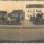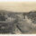 À esquerda, observa-se uma sequência de construções comerciais e residenciais, incluindo um edifício de três pavimentos com a inscrição "NOVA" no coroamento. No centro da via, ergue-se um poste de madeira com diversas travessas de fiação elétrica. Figuras humanas e veículos estacionados são visíveis ao longo das calçadas e da rua.