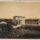A via pública apresenta pavimentação em paralelepípedos e uma calçada estreita que margeia as edificações. O suporte fotográfico possui bordas serrilhadas e moldura branca com marcas de oxidação e sujidade.