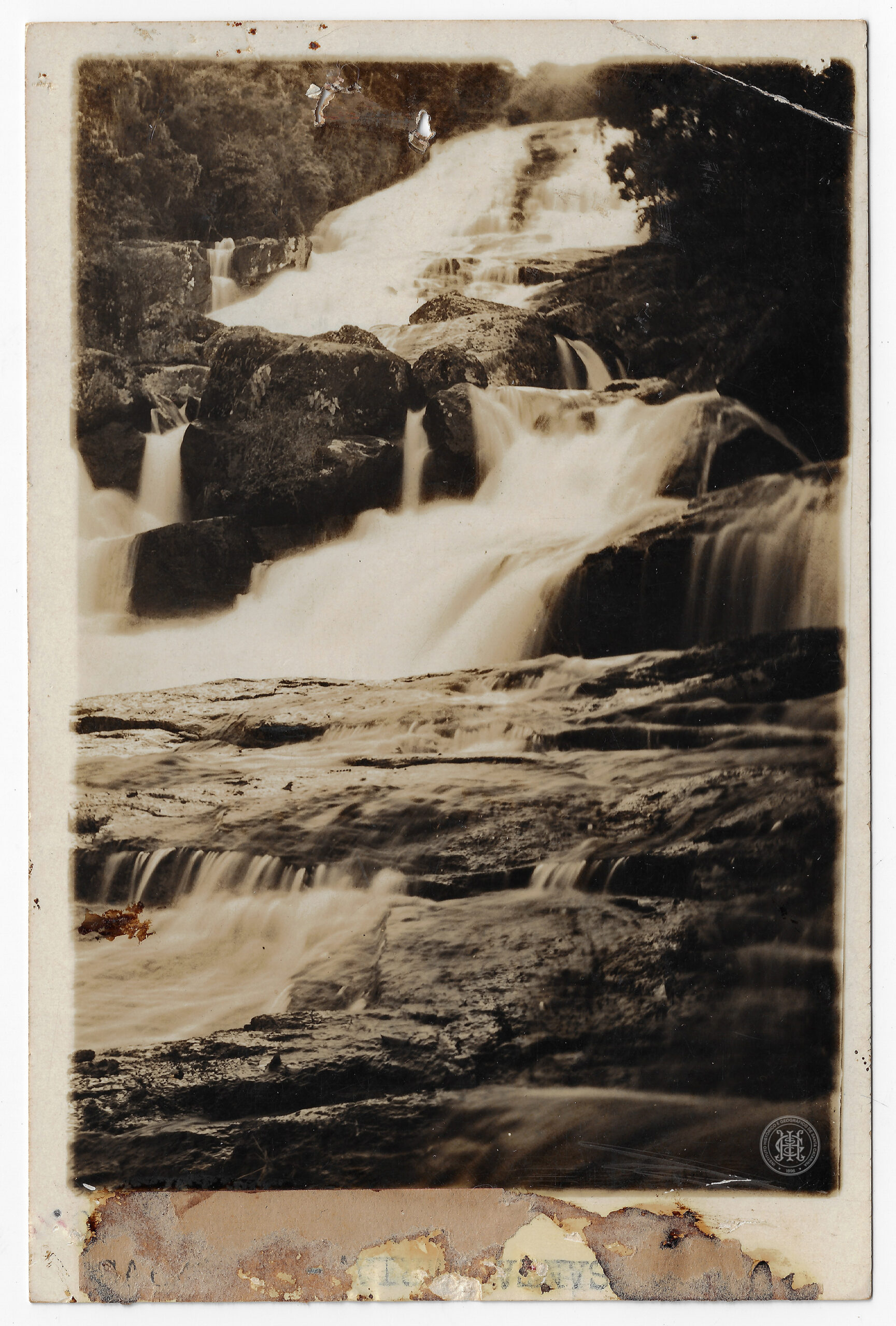Na base da fotografia, em uma faixa desgastada do suporte, nota-se uma inscrição em azul com o termo "SANTA MARIA".