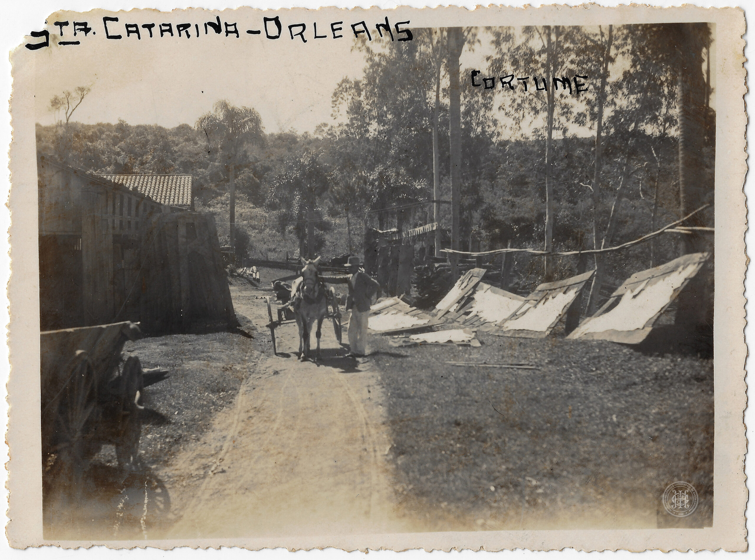 No canto superior esquerdo, consta a inscrição manuscrita em tinta escura "STA. CATARINA - ORLEANS" e, no canto superior direito, a palavra "CORTUME".