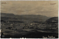 A fotografia apresenta uma vista parcial da sede distrital de Getúlio Vargas, identificada na imagem como Nova Breslau, no município de Hamônia, atual Ibirama, Santa Catarina.
