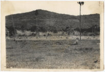 Ao fundo, a paisagem é dominada por uma elevação montanhosa de encostas suaves, inteiramente recoberta por uma floresta densa característica de Mata Atlântica.