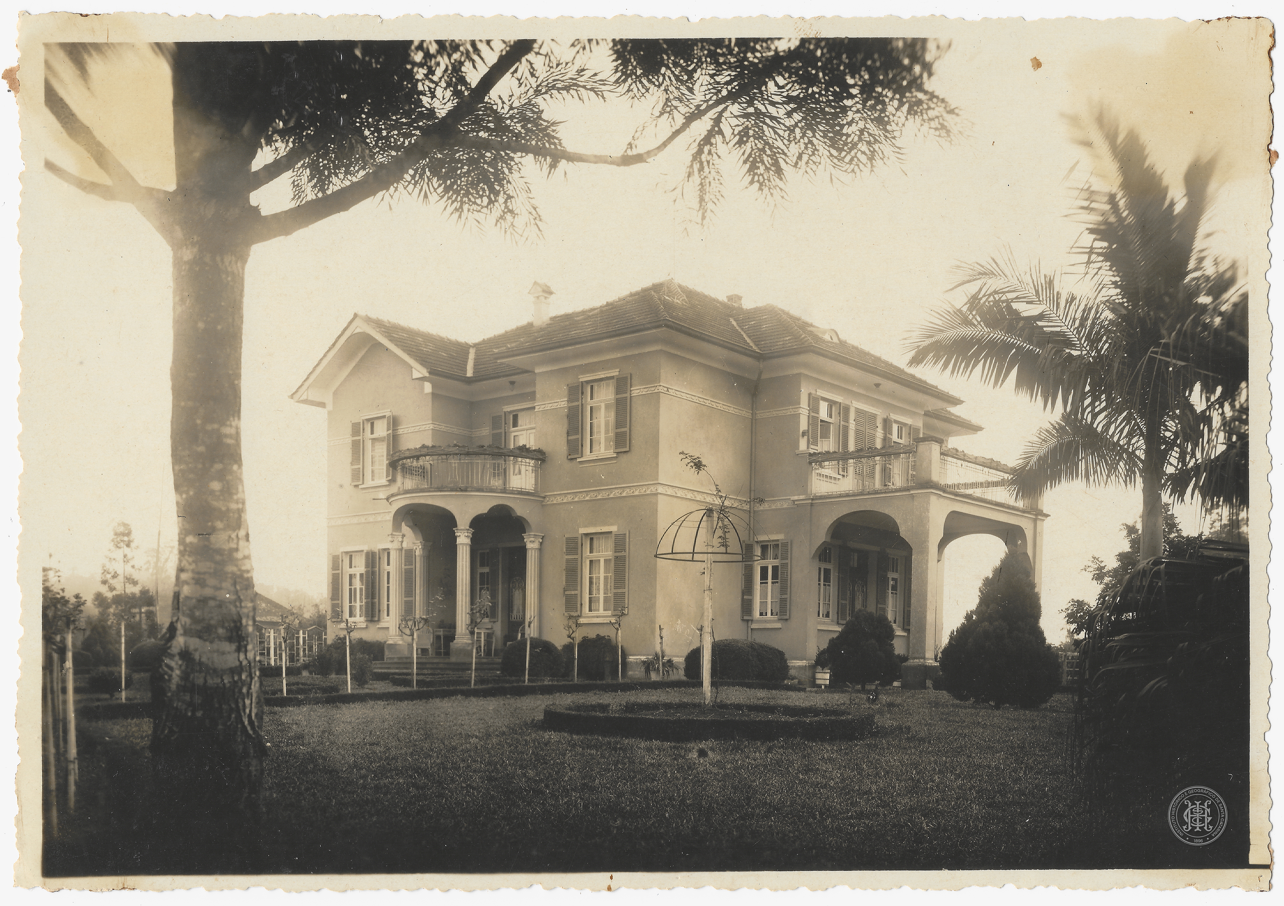 Gênero Fotográfico, Fotografia Documental, Paisagem Urbana, Arquitetura e Obras, Patrimônio Privado e Residencial, Edificações Históricas, Villa Alma, Brusque, Santa Catarina, Guilherme Renaux, Família Renaux, Ecletismo, Mansões, Jardins Históricos, Paisagismo, Topiaria, Século XX, História de Brusque, Documentação de Acervo, Elite Industrial, Imigração Alemã, Patrimônio Cultural