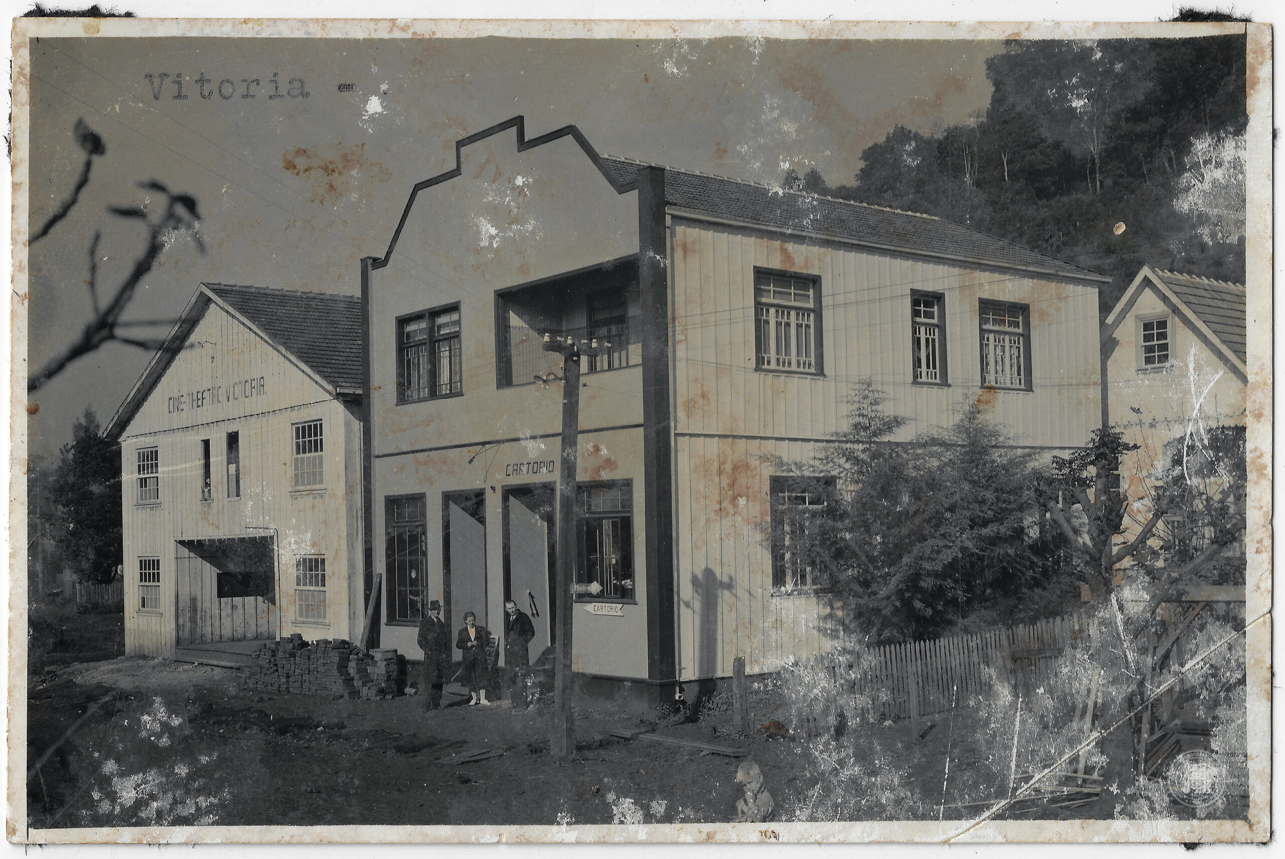 Vista do Cine-Teatro e Cartório do distrito de Vitória, Caçador