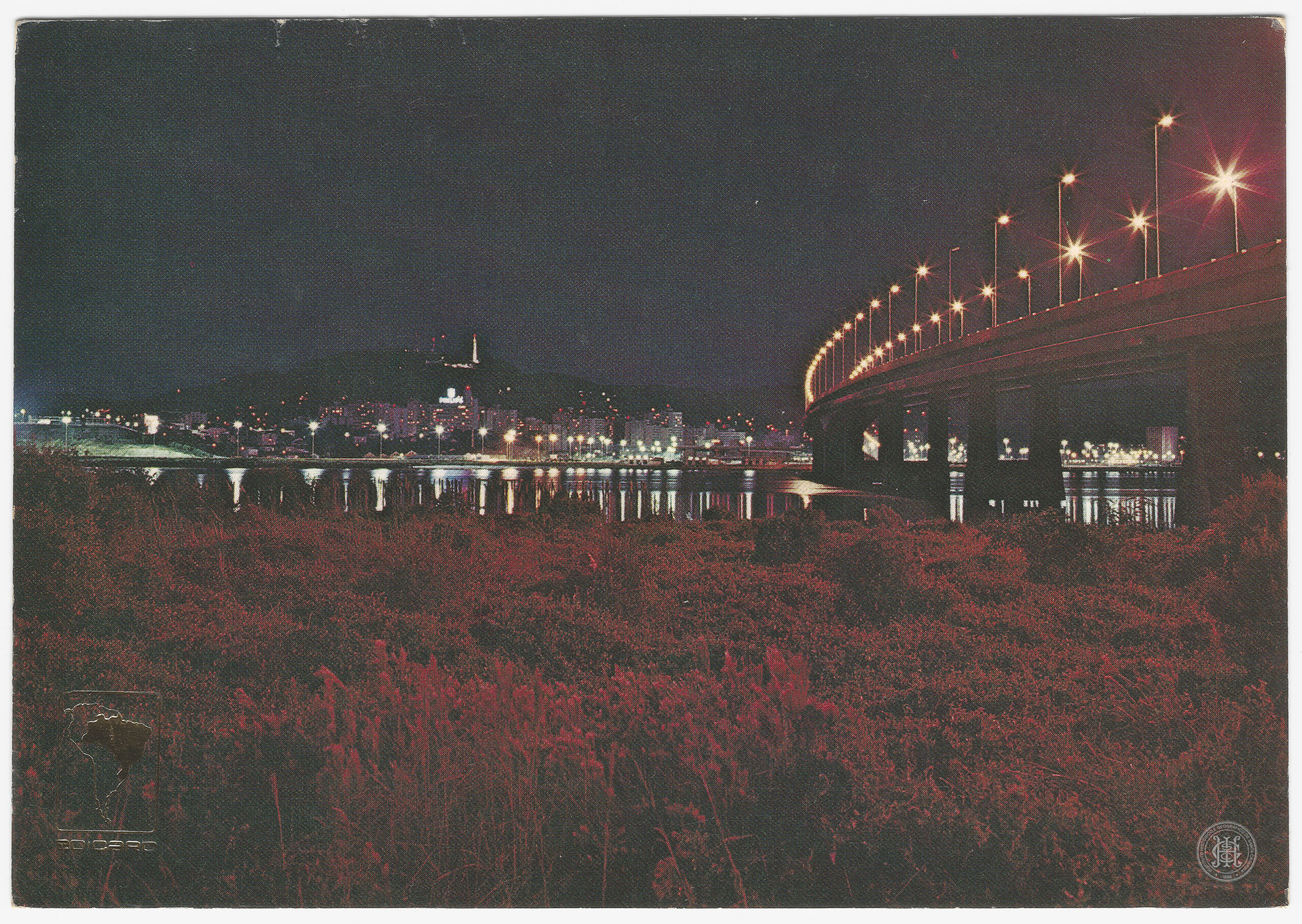 Florianópolis, Santa Catarina, Ilha de Santa Catarina, Ponte Engenheiro Colombo Machado Salles, Morro da Cruz, Baía Sul, Estreito, Vista Noturna, Paisagem Urbana, Infraestrutura Viária, Iluminação Pública, Cartão-postal, Edicard, Fotografia Noturna, Urbanismo, Geografia Urbana, Década de 1990, Maciço do Morro da Cruz, Pontes de Florianópolis