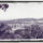 No plano de fundo, a paisagem é dominada por extensas áreas de cultivo em encostas, destacando-se plantações de milho e bananais organizados em patamares. O topo da elevação é coroado por uma linha de mata nativa densa, com árvores de grande porte que se estendem por todo o horizonte superior. A composição utiliza uma perspectiva elevada, capturando a organização produtiva da colônia, desde a criação de animais e moradia até as zonas de lavoura. A iluminação solar direta cria sombras marcadas, evidenciando as texturas das construções de madeira e a volumetria da vegetação.