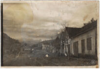 À esquerda, observa-se uma edificação isolada próxima a um declive. No plano médio, o casario de madeira margeia a via, evidenciando a ocupação urbana consolidada que fundamentou o pleito de emancipação da vila.