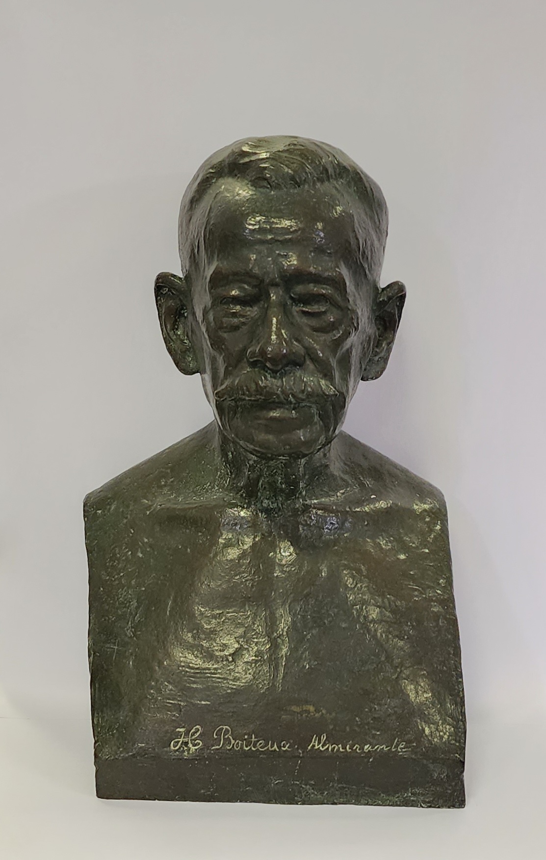 IHGSC, Henrique Adolfo Boiteux, Almirante da Marinha, Marinha do Brasil, Família Boiteux, Revolta da Armada, Assembleia Legislativa de Santa Catarina, Brasão de Santa Catarina, Academia Catarinense de Letras; Moacir de Figueiredo, Cobre, Escultura, Busto, Artes plásticas, Iconografia, Metalurgia
