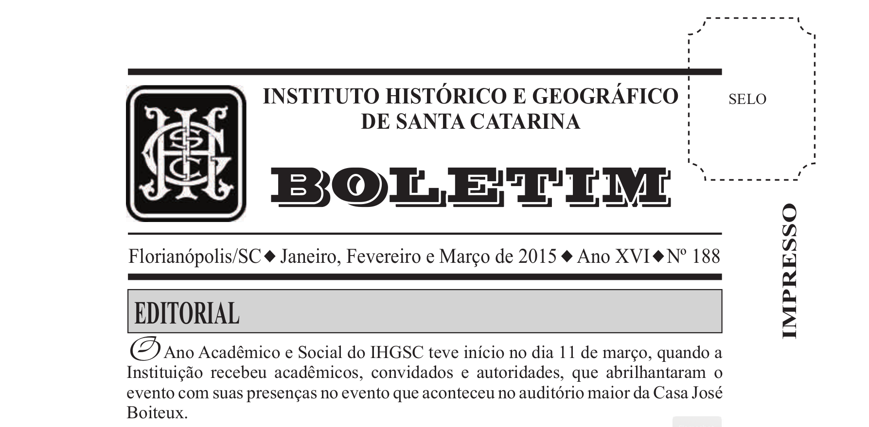 BOLETIM 188 – ANO XVI – Janeiro/Fevereiro/Março DE 2015
