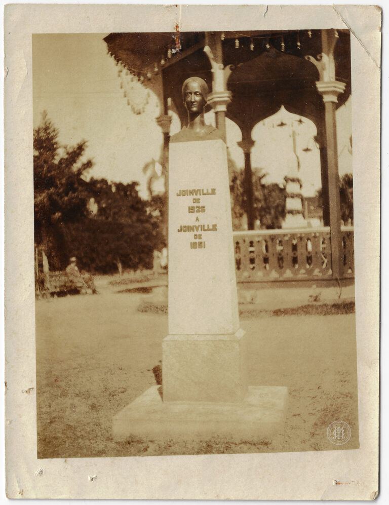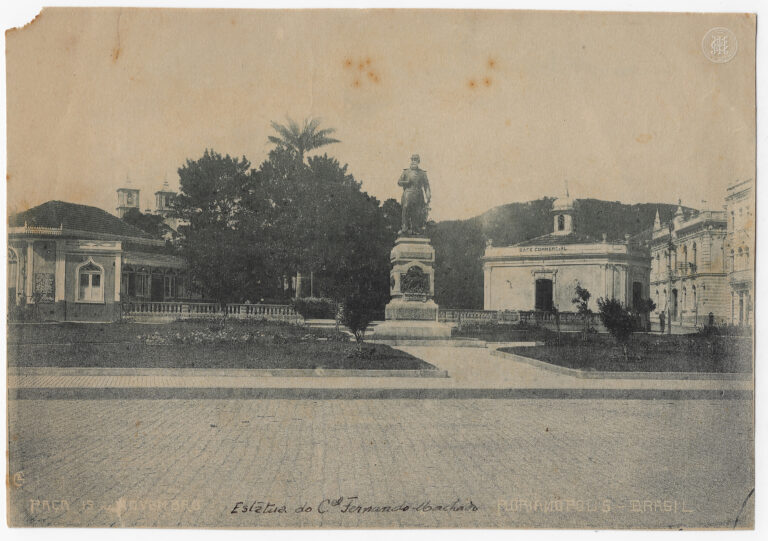 A Herma de Jerônimo Coelho na Praça Pereira Oliveira, em Florianópolis, Santa Catarina, no ano de 1926. O monumento, posicionado centralmente no plano médio, é composto por um...