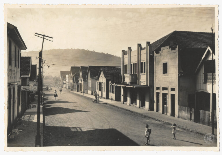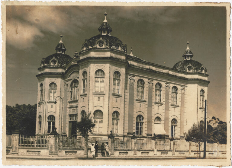 Palácio Marcos Konder, antiga sede da Prefeitura Municipal de Itajaí, em Santa Catarina. A imagem apresenta uma edificação de dois pavimentos em estilo eclético, destacando-se pela presença de...