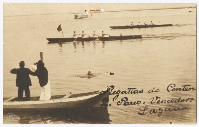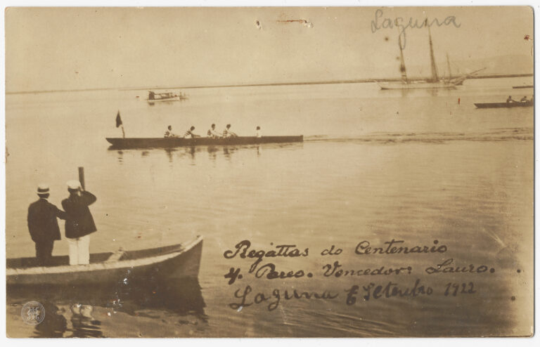 Realização do 4.º Páreo das Regattas do Centenário, ocorrido em 6 de setembro de 1922, na cidade de Laguna