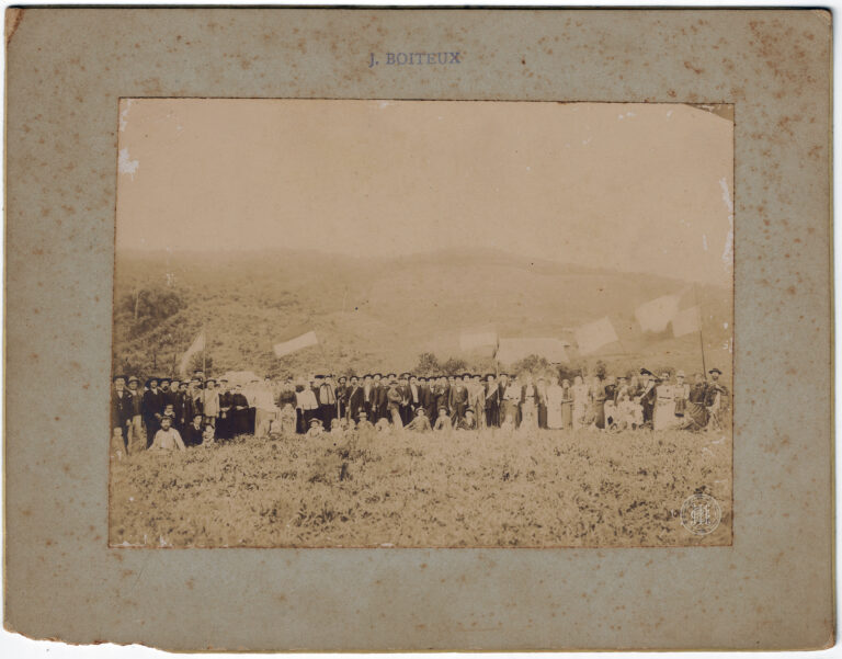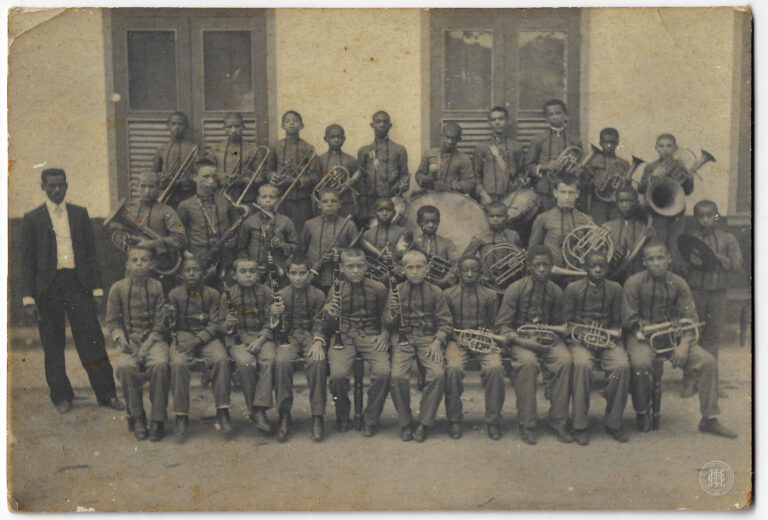 Vista em perspectiva da Catedral Metropolitana de Florianópolis e da Praça XV de Novembro em 1906. Em primeiro plano, observa-se o leito da rua pavimentado com paralelepípedos e...