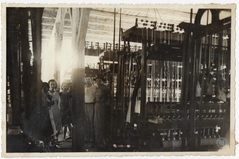 Vista parcial do interior do Cortume Brusquense, em Brusque, Santa Catarina. A composição organiza-se em um amplo galpão industrial com estrutura de sustentação em madeira, evidenciada por vigas...